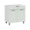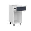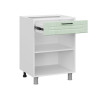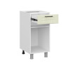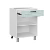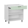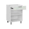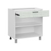 Ящик в верхней части подойдет для приборов и аксессуаров, которые часто нужны под рукой. В нише с полкой поместятся посуда, небольшая кухонная техника или продукты.