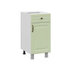 Внутреннее наполнение включает отделение с полкой и выдвижной ящик, который плавно и бесшумно выдвигается на всю глубину, обеспечивая удобный обзор содержимого. Петли с доводчиками позволят избежать хлопков и резкого закрывания. Фасады украшены декоративной фрезеровкой, что подчеркнет индивидуальность интерьера.