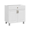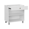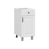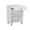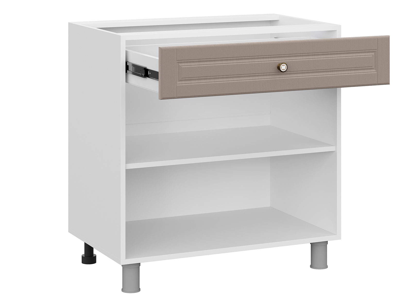 Внутреннее наполнение включает отделение с полкой и выдвижной ящик, который плавно и бесшумно выдвигается на всю глубину, обеспечивая удобный обзор содержимого. Петли с доводчиками позволят избежать хлопков и резкого закрывания. Фасады украшены декоративной фрезеровкой, что подчеркнет индивидуальность интерьера.