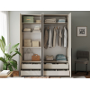 Внутреннее пространство организовано двумя штангами и может быть дополнено полками и выдвижными ящиками из одноименной коллекции.