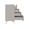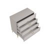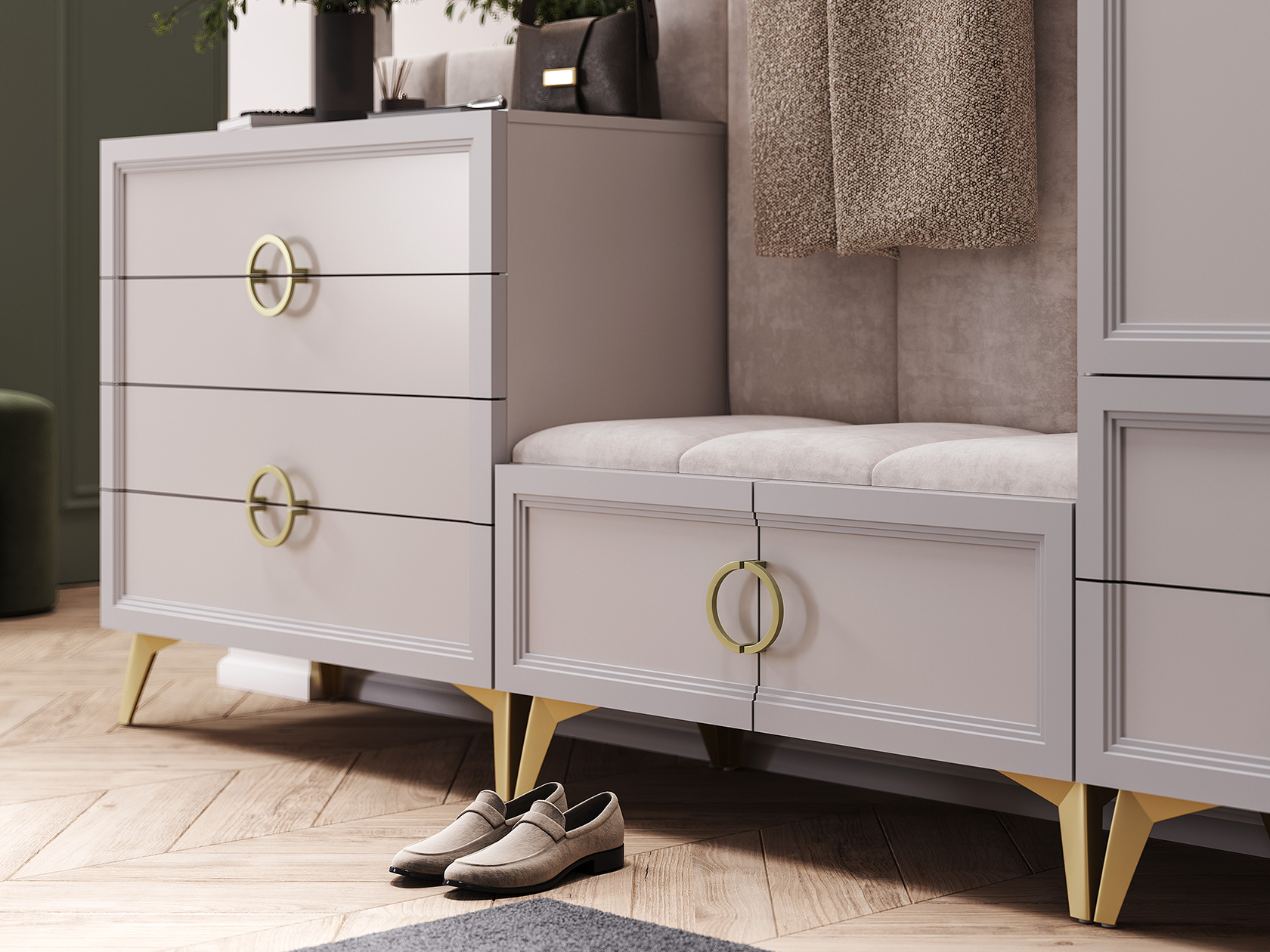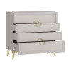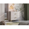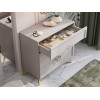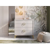 Выдвижные ящики позволяют аккуратно распределить белье, аксессуары и другие предметы обихода. Благодаря декору в виде вертикальных линий и ручкам в золотом оттенке модель смотрится очень привлекательно и элегантно. Высокие ножки придают мебели легкость и изящество.